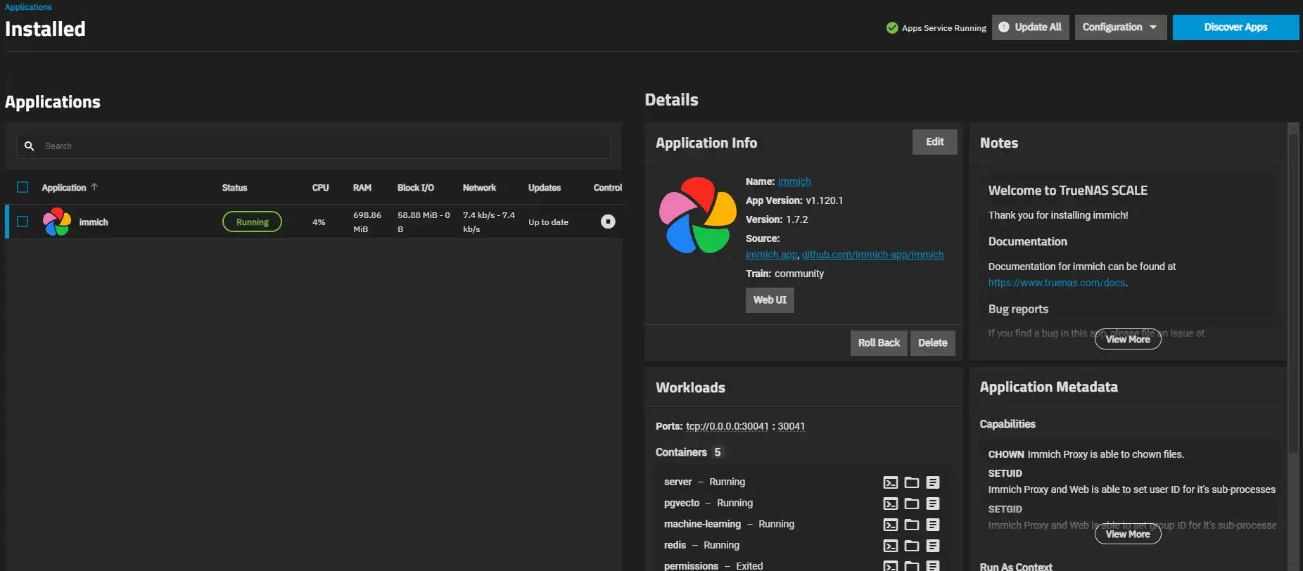 We recommend keeping TrueNAS Community Edition and Immich relatively up to date with the latest versions to avoid any issues.